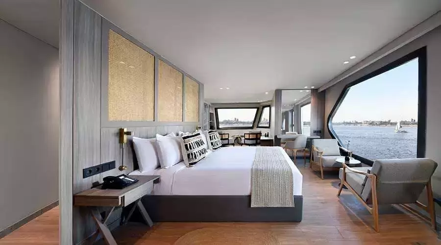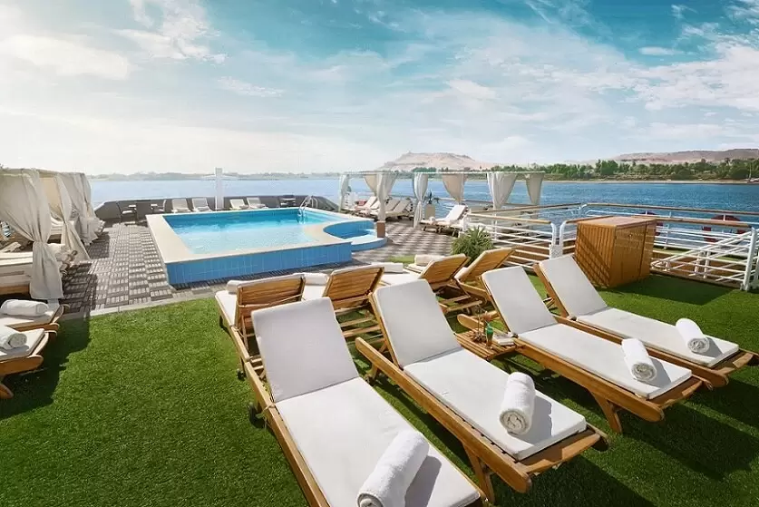 Breakfast (Voluntary) Hot Air Balloon: If you desire to make your vacation in Luxor truly memorable. Gently gliding above the Valley of the Kings, Valley of the Queens, and the Mountain of the Nobles. The duration of the flight is approximately 30 to 45 minutes, contingent upon the prevailing weather conditions. Explore the West Bank -After crossing the Nile, proceed to the Valley of the Kings to see the tombs of several Dynasties. Please note that admission to King Tut's tomb requires an additional ticket, which is not included. The structure known as the Temple of Deir El Bahari. During the return trip, make a stop at the colossi of Memnon which are a pair of enormous seated statues depicting Amenhotep III facing the Nile. Onboard lunch. Embark on a voyage to Esna. Traditional British afternoon tea. Disco Party.