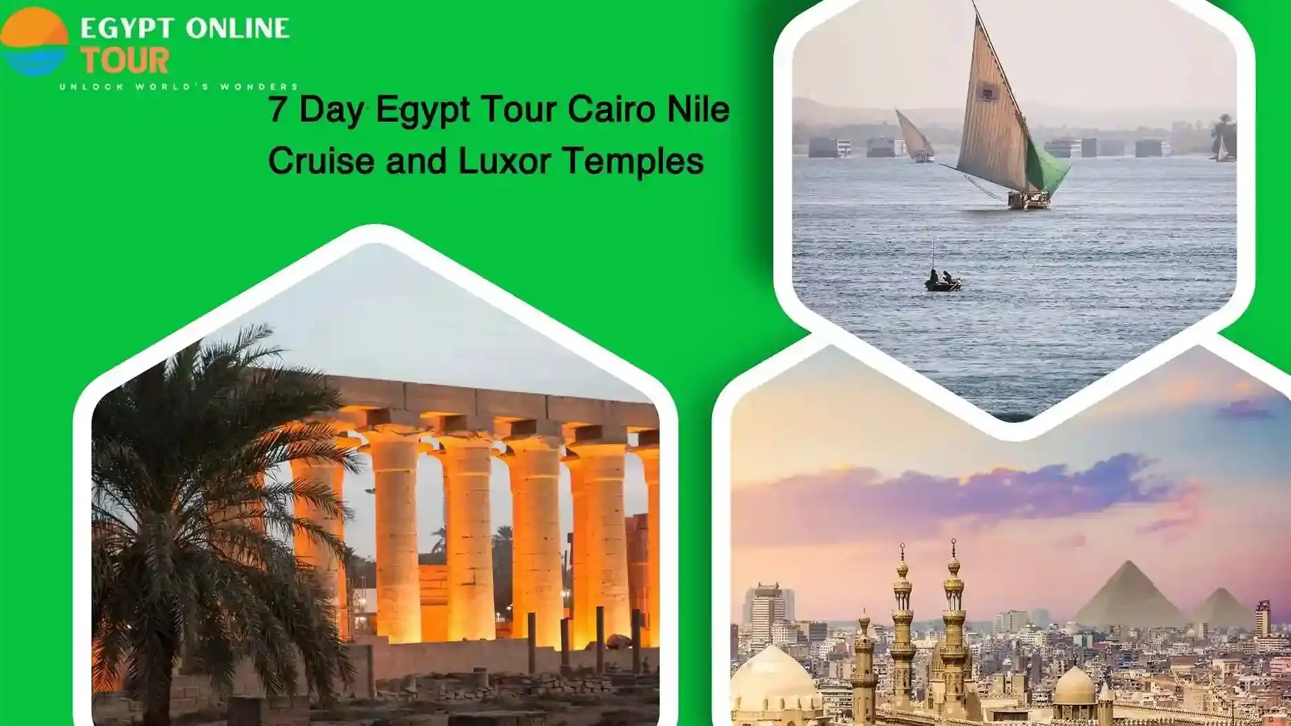 Start now on an unforgettable 7 Day Egypt Tour Cairo Nile Cruise and Luxor Temples through Egypt’s timeless wonders! Discover Cairo's rich history, from the awe-inspiring Pyramids of Giza to the treasures of the Egyptian Museum. Then, relax in luxury on a Nile Cruise, enjoying panoramic views as you visit ancient temples like Karnak and Luxor. Explore the majestic Valley of the Kings and the mystical Philae Temple in Aswan. This is your chance for 7 Day Egypt Adventure Discover Cairo's Splendor & Relax on a Nile Cruise making memories that will last a lifetime.