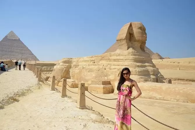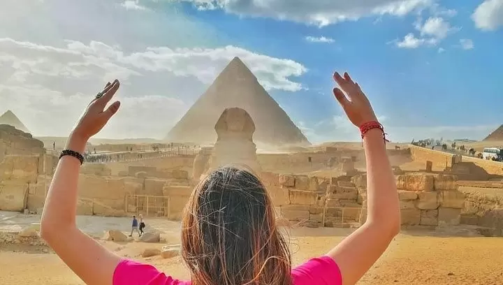 Experience the excitement of our exclusive Giza tour, where you'll have the opportunity to explore the magnificent Great Pyramids, the ancient Valley Temple, and the awe-inspiring 3000-year-old Sphinx. The private day trip to Giza starts with a convenient pick-up from your hotel. Our personalized Giza tour offers a captivating insight into the significance of these iconic sites. You'll gain a deep understanding of their history and stories, expertly explained by our friendly Egyptologist. Discover the fascinating history behind the three famous pyramids of Giza: Cheops, Khfre, and Menakaure. For those seeking an extra dose of excitement, solo entry into one of these pyramids is an option (at an additional cost), as guides are not permitted inside. Once you've finished exploring the ancient wonder, it's time to venture towards the nearby plateau. There, you'll be able to witness the majestic pyramids emerging from the golden sands, with the city skyline providing a stunning backdrop.