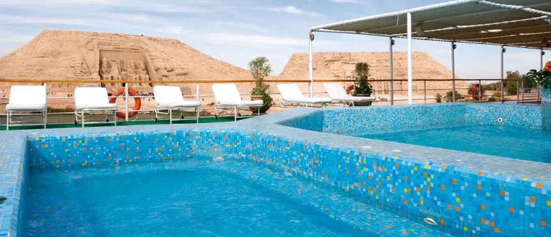 Guests can relax on the sun deck, take a dip in the swimming pool, or rejuvenate at the spa and wellness center, The ship also features regular evening entertainment, boutique shops, and a cozy library,Shore excursions, led by experienced Egyptologists, offer in-depth insights into Egypt's rich history, with visits to iconic sites such as the temples of Karnak and Luxor, the Valley of the Kings, and the Temple of Philae.